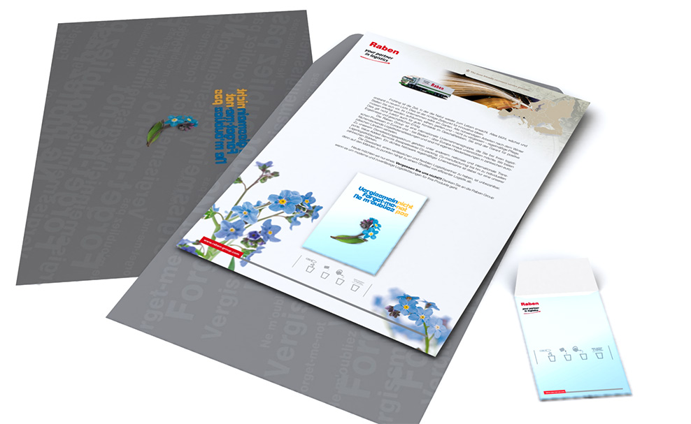 Kampania pod tytułem "Forget me not" skierowana do nowych i potencjalnych klinetów Grupy Raben na rynkach europejskich - nasiona niezapominajki tworzyły kontekst przekazu